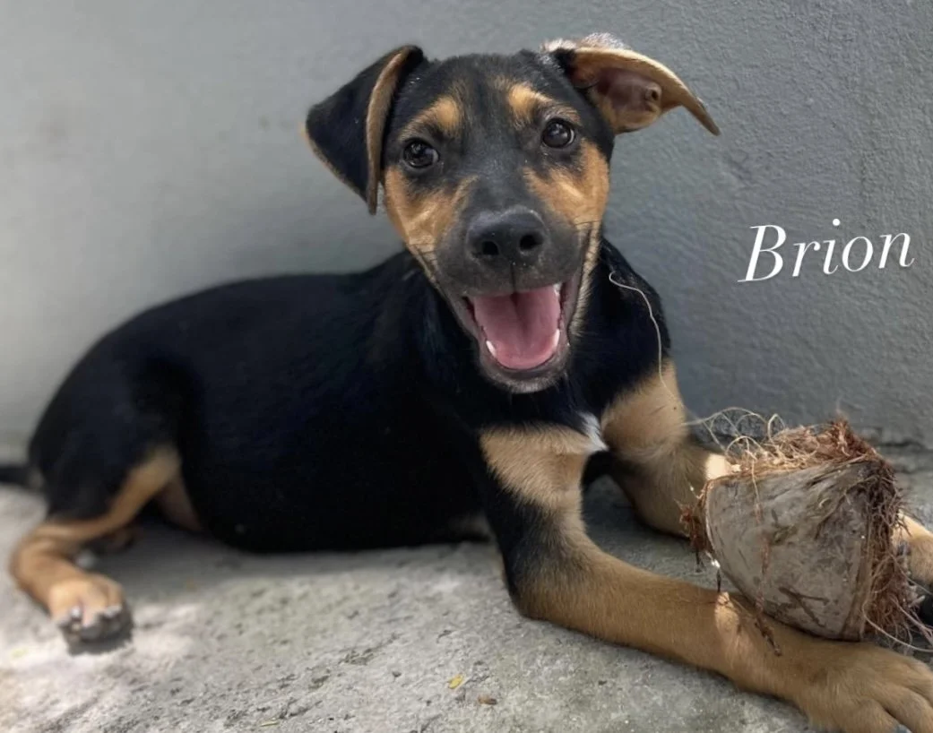 Brother and sister were dumped at the dump when we found them. Brion had a big wound. We took them to the vet to get stitched up and give them vaccinations.